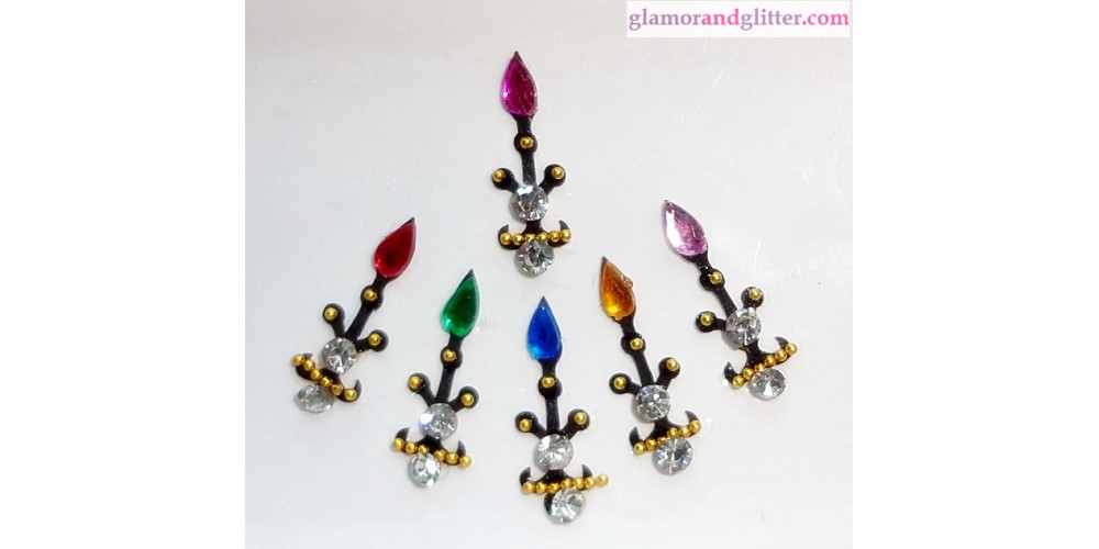 Black Velvet Crystal Diamante Jewelled Bindis with white & colored flame crystals CB106