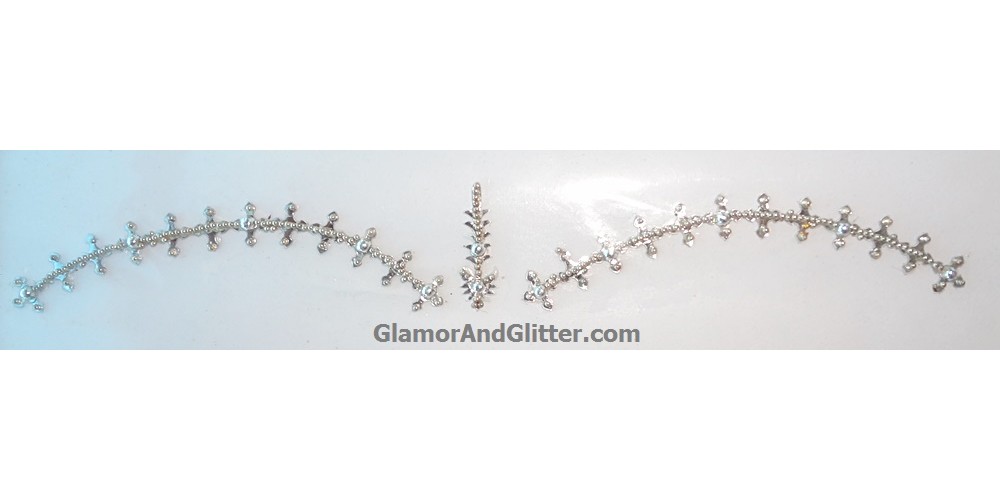 Glittering Silver Peer Bindis Set for entire Forehead Bollywood Glam Bellydancing Body Jewelry BB119