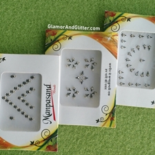 Elegant black bindis. Black velvet background with premium white crystals. Stick-on body jewels that can be reused several times.