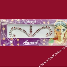 Gorgeous bridal bindis set. White and Garnet crystals embellish over 85 individual bindis / body jewels. The stunning centerpiece is 1 inch long and clustered with premium faceted crystals.